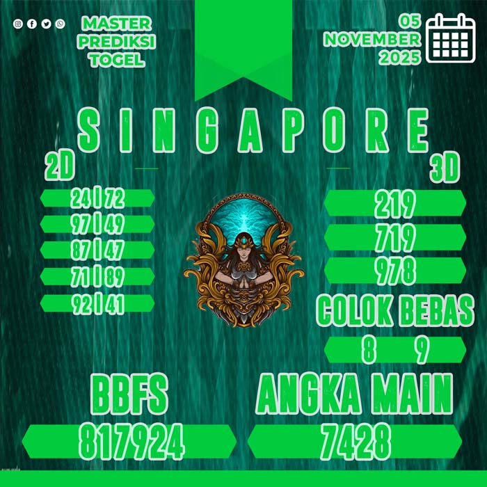 Master Prediksi Singapore angka jitu SGP yang dapat membantu keberuntungan pecinta togel ketika bertaruh di Paito SGP pools. pecinta togel prediksi SGP yang disajikan sudah terjamin keakuratan dan resmi. Mainkan pasaran togel SGP menggunakan angka jitu SGP yang kami berikan. Semua prediksi SGP akan dibagikan secara gratis tanpa dipungut biaya apapun. Jangan tidak percaya diri bagi pecinta togel yang baru saja mencoba bocoran SGP sebagai panduan bermain yang menguntungkan.